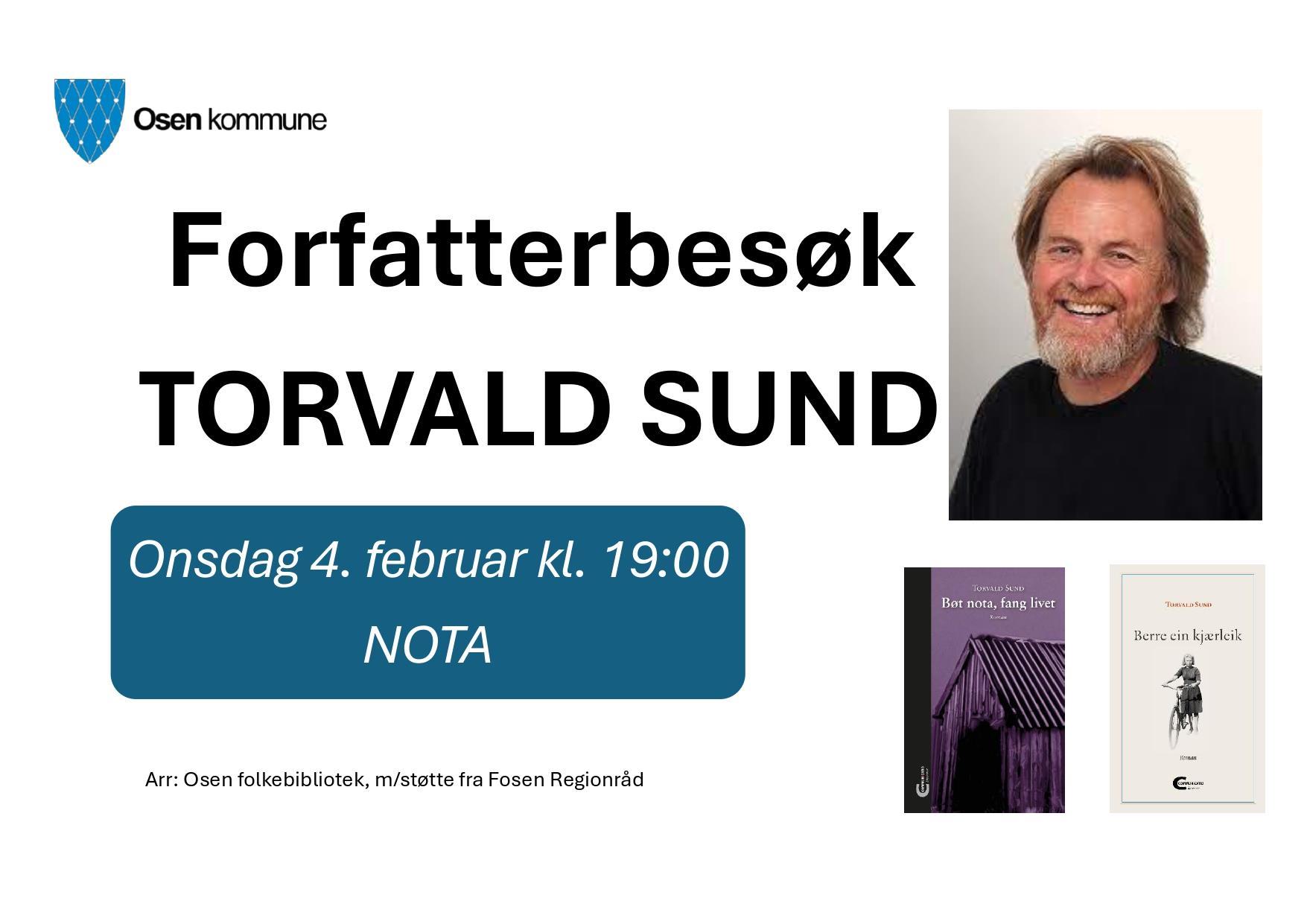 Forfatter Torvald Sund kommer på besøk i NOTA onsdag 4. februar kl. 19:00.