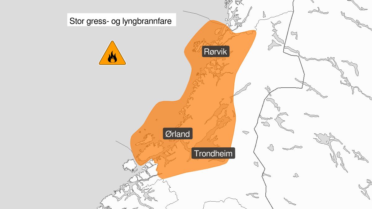 Stor skogbrannfare i OsenMeteorologisk Institutt har oppgradert skogbrannfaren i Osen og deler i Trøndelag til oransje (høy). Det er stor gress- og lyngbrannfare.Vegetasjonen kan svært lett antennes: Veldig store områder kan bli berørt. Ikke bruk åpen ild. Lokalt stor skogbrannfare i snøfrie områder inntil det kommer nedbør av betydning.Varsel fra Meteorologisk Institutt for Deler av Trøndelag | Varsom.no Kilde: Varsom.no